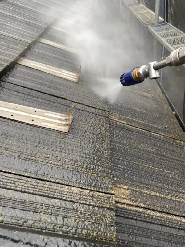 屋根が割れてしまわないか確認した後、洗浄を行っていきます。