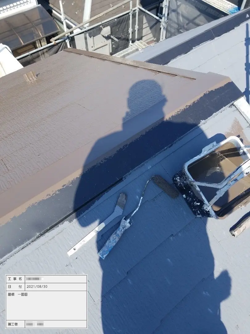 下塗りについてはこちらの「現場レポート:東京都葛飾区 F様邸 スレート屋根の下塗り プロテクトルーフ塗布」をご覧ください。