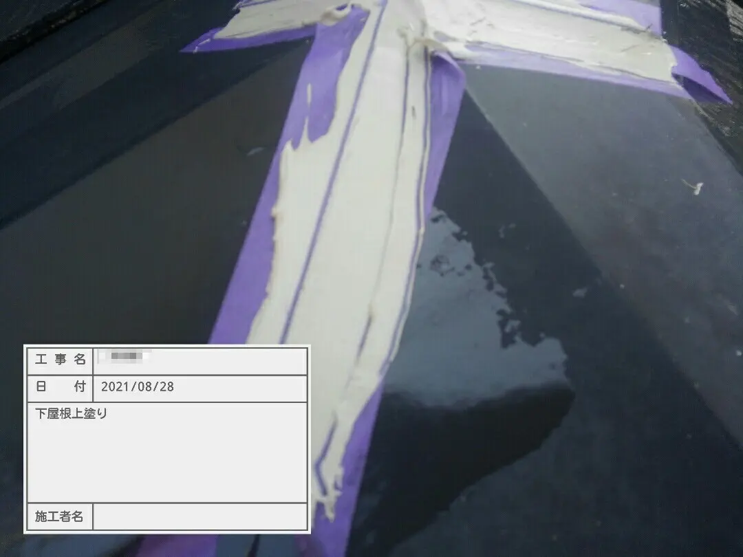 東京都江戸川区西小岩のN様邸にて棟板金のコーキング打ちとプライマー下塗りを行いました。