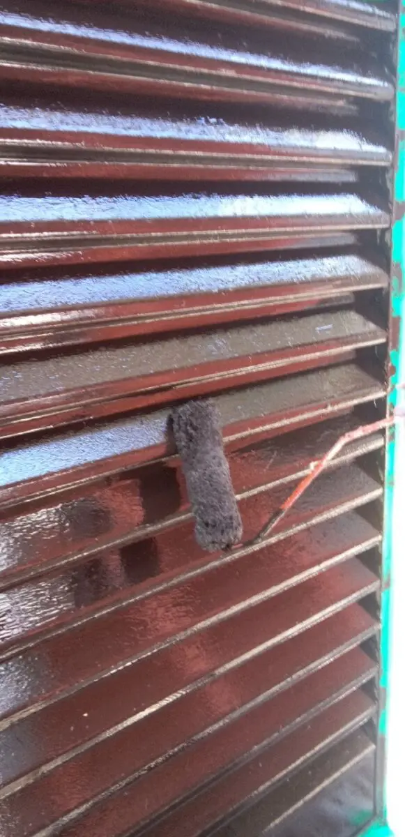 下塗り後は上塗りをして雨戸塗装の完了です!波形状になっていますので、塗装されていないところができないように丁寧に塗りました!