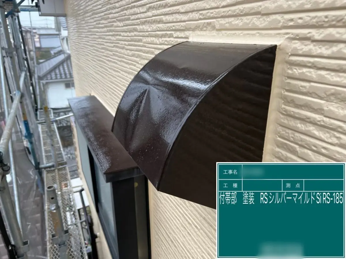 【付帯部 屋外フードの仕上げ塗装 シルバーマイルドSi塗布】