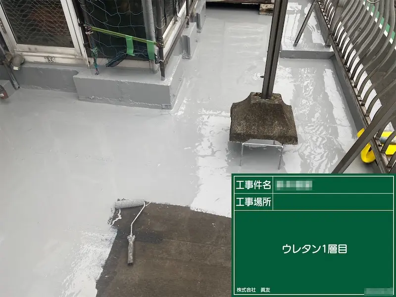 前回の現場レポートはこちらの「東京都足立区【外壁塗装工事】屋上ベランダ防水工事 下地処理 ケレン〜下塗り プライマー塗布」をご覧ください。