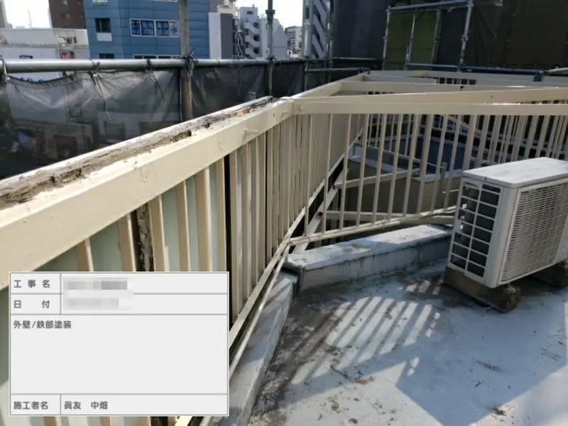 本日は屋上鉄部の錆止め〜上塗りの工程をご紹介します。