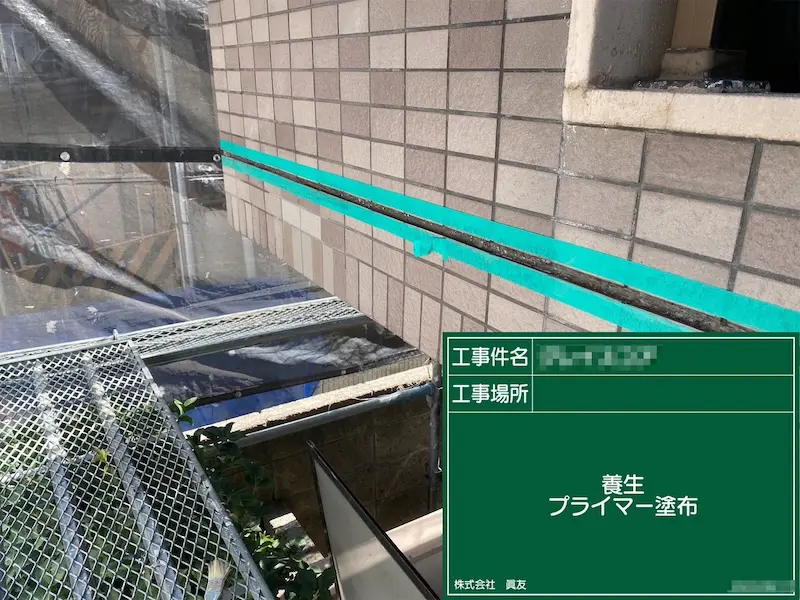 既存シーリングを撤去したら養生とプライマーを塗ります。