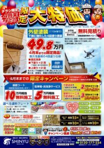 ①外壁塗装をご契約された方全員に基礎コート無料施工や駐車場・床洗浄サービスなどの特典!